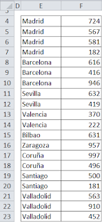 segundo las sumas que corresponden a cada ciudad.
