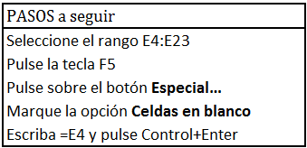 Para que la macro funcione correctamente primero se ha de seleccionar el rango E4:E23.