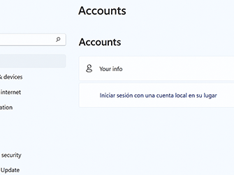 - En la sección Tu información, busca la opción “Iniciar sesión con una cuenta local en su lugar”.