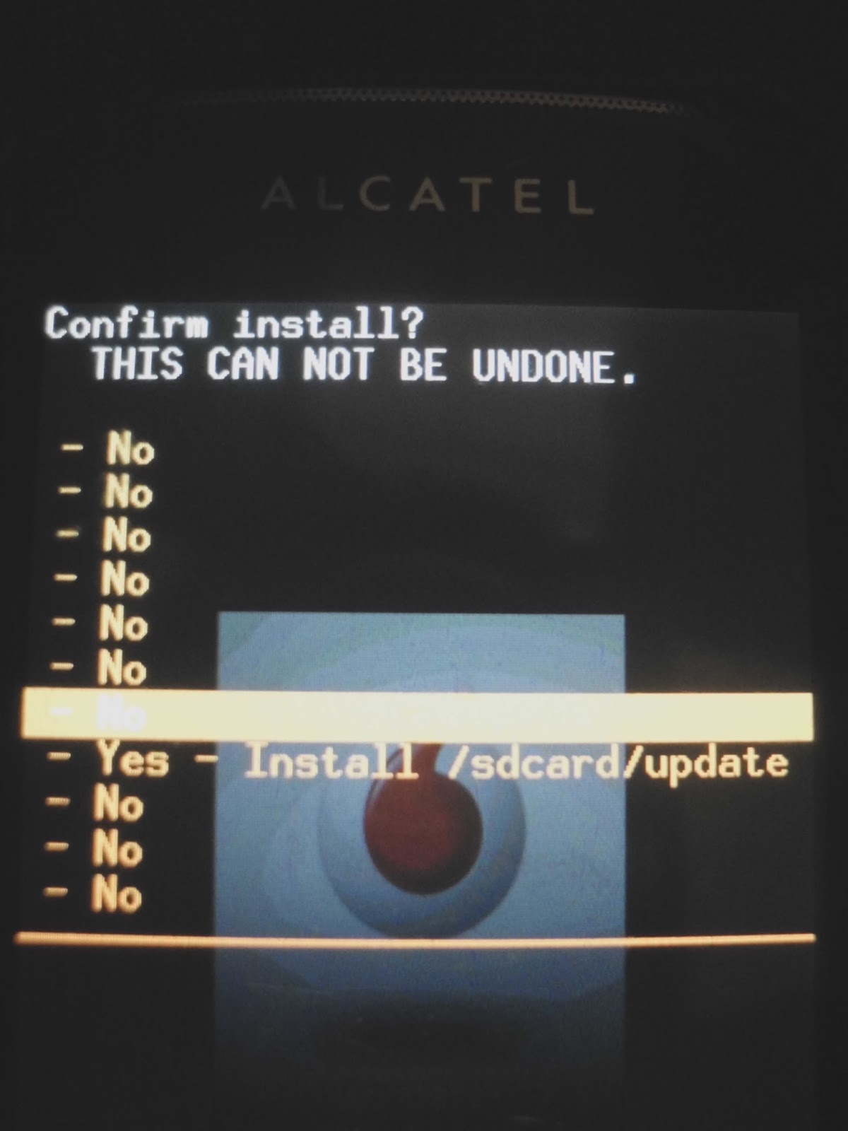 Paso 5: moviendonos con las teclas de volumen vamos ir a donde dice “Yes – Install /sdcards/update” y le damos a la Casita de nuevo.