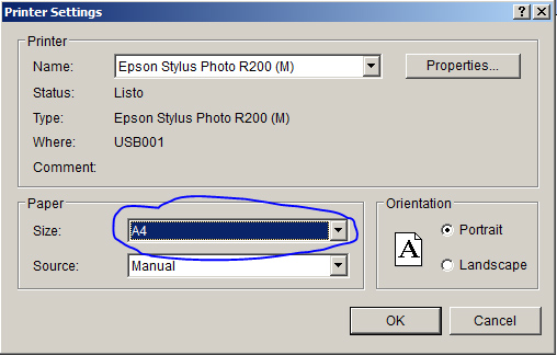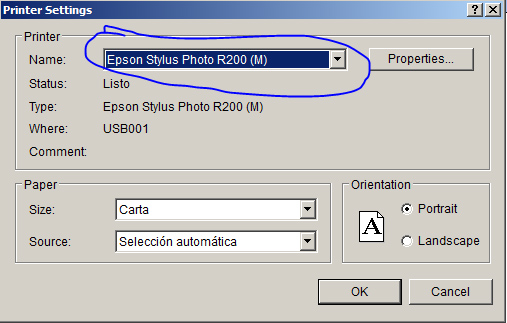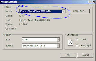 - Asegurate que la impresora Epson Stylus Phot R(modelo) esta seleccionada.