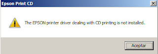 El controlador de la impresora EPSON encargado de la impresión de cd no esta instalado.